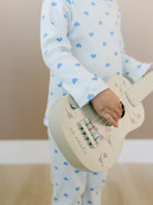 Our Dino Print Wooden Ukulele features charming dinosaur friends scattered across a gentle sage green finish, turning music practice into imaginative storytelling time. While cheap plastic instruments break easily and sound terrible, our FSC-certified wooden construction delivers authentic musical tones that inspire budding paleontologists to keep exploring both music and imagination.