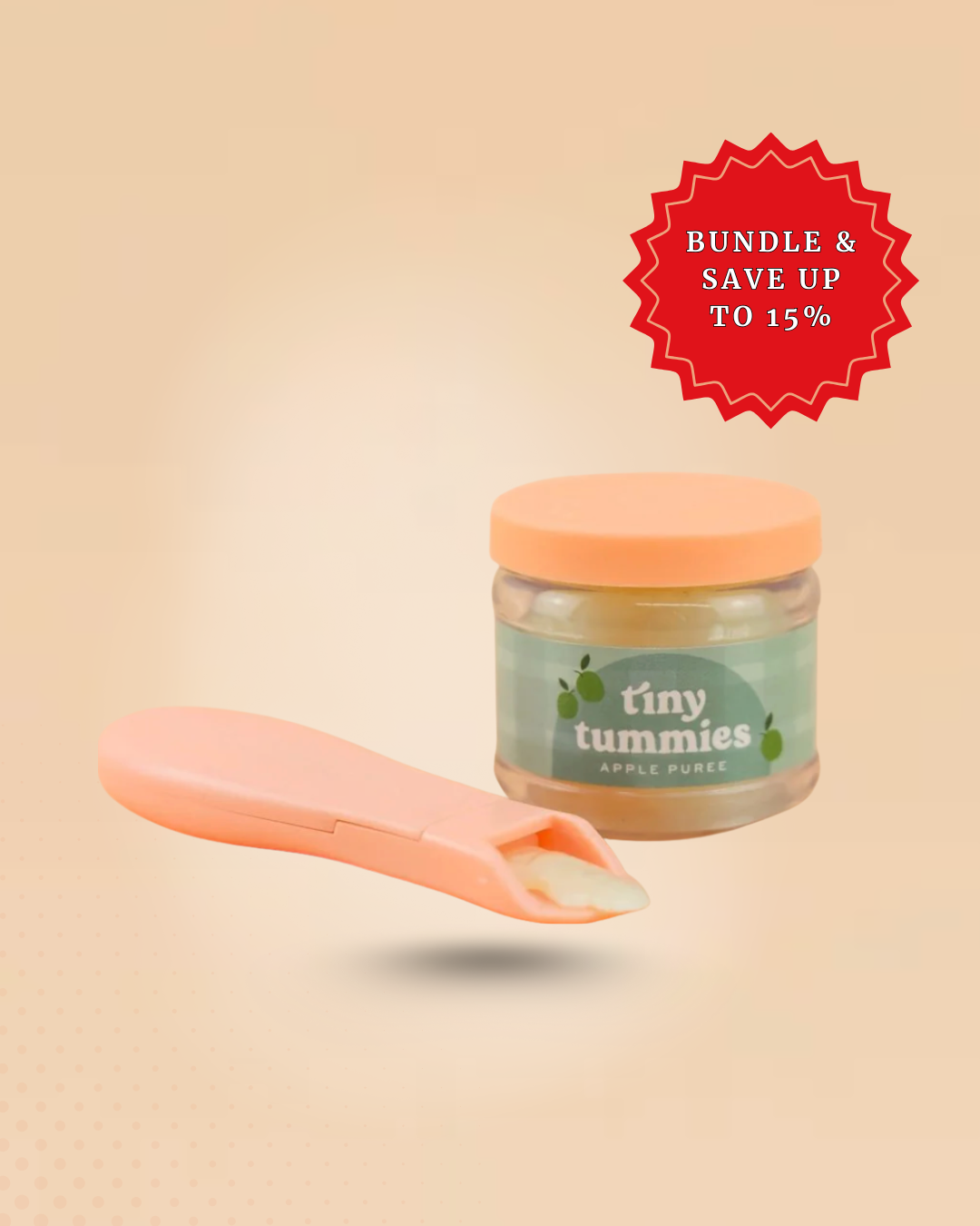 Create heartwarming nurturing moments with Tiny Harlow's Tiny Tummies Apple Puree set. This enchanting doll food experience brings first-foods feeding to life as wholesome apple puree magically appears on the spoon and disappears when fed to your child's cherished doll.