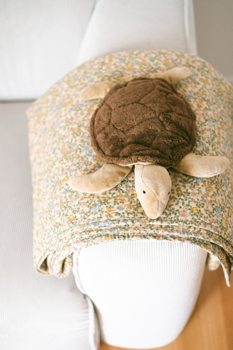 Made with GOTS-certified organic cotton and filled with natural warming elements, it serves as both a cherished playmate and soothing comfort object. Choose between the small turtle with a grape seed insert for targeted warmth, or the large version with spelt chaff filling for extended comfort and full-body relaxation.