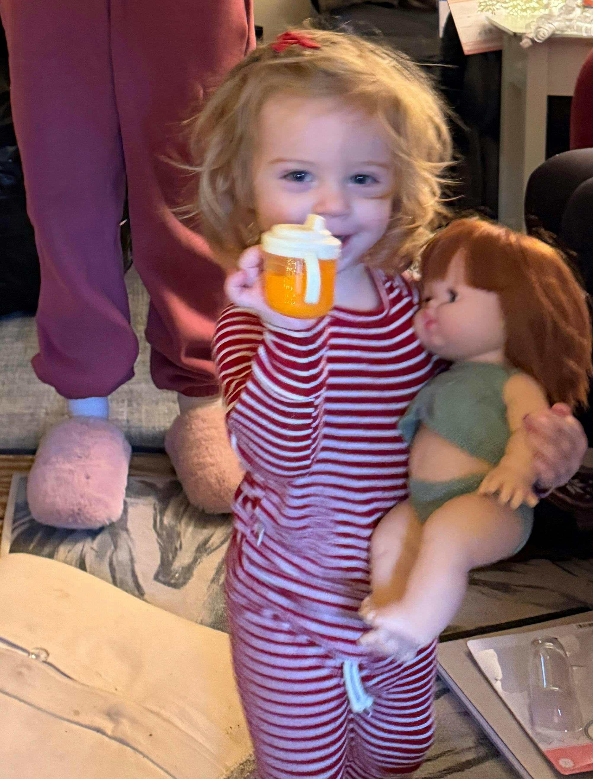 It is her most favourite thing in the world. It was her first toy that she slept with when she came home. It warmed her when she was newborn. She sleeps with it every night of her life.