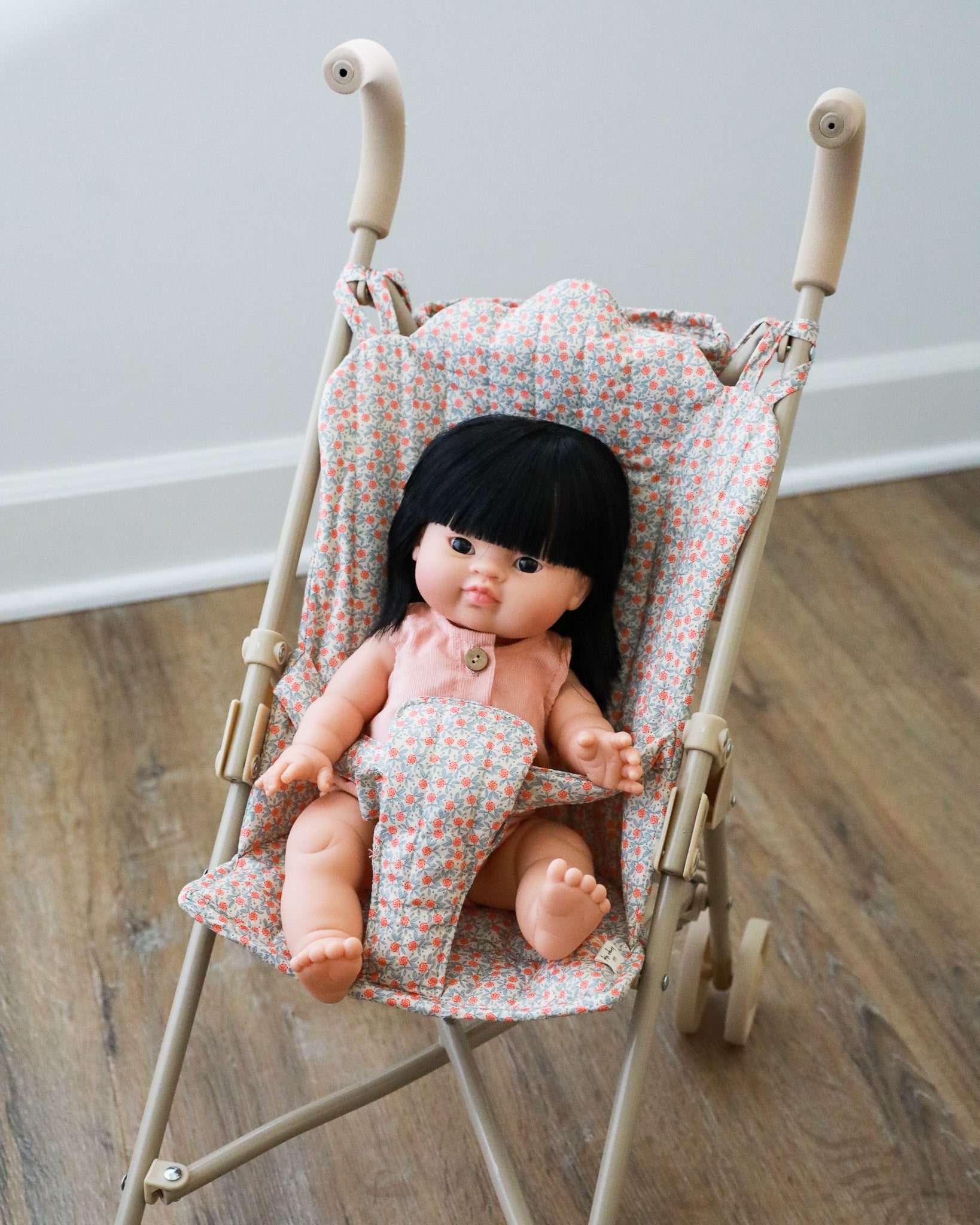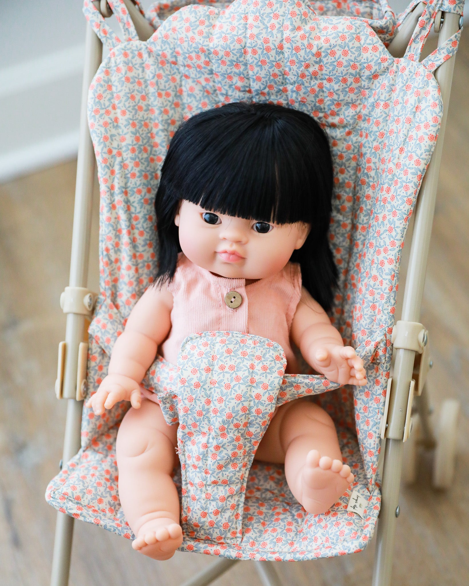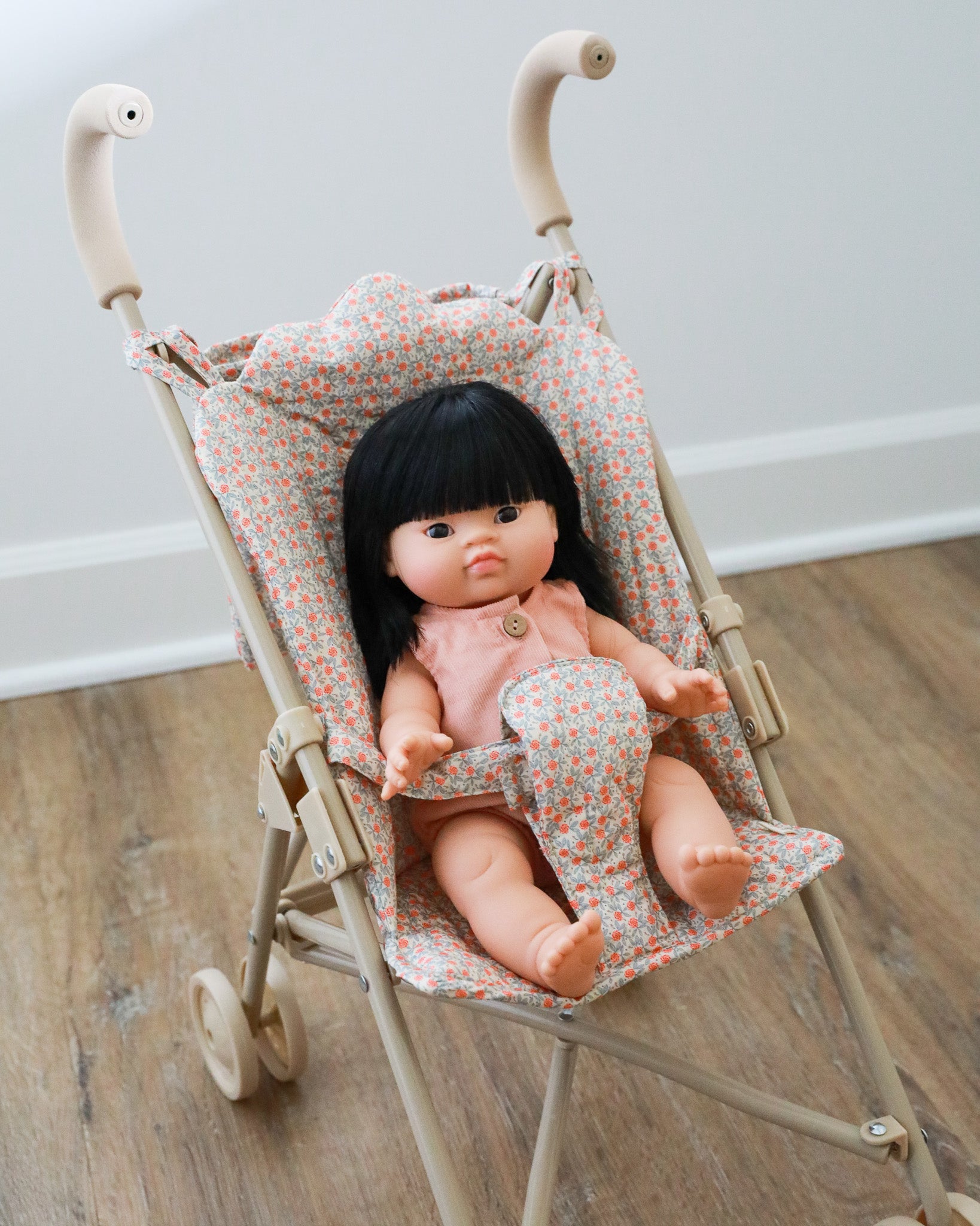This beautiful baby doll stroller will fit most dolls, including our gorgeous Minikane Dolls. Discover our collection of dolls and doll accessories at The Doll Shop