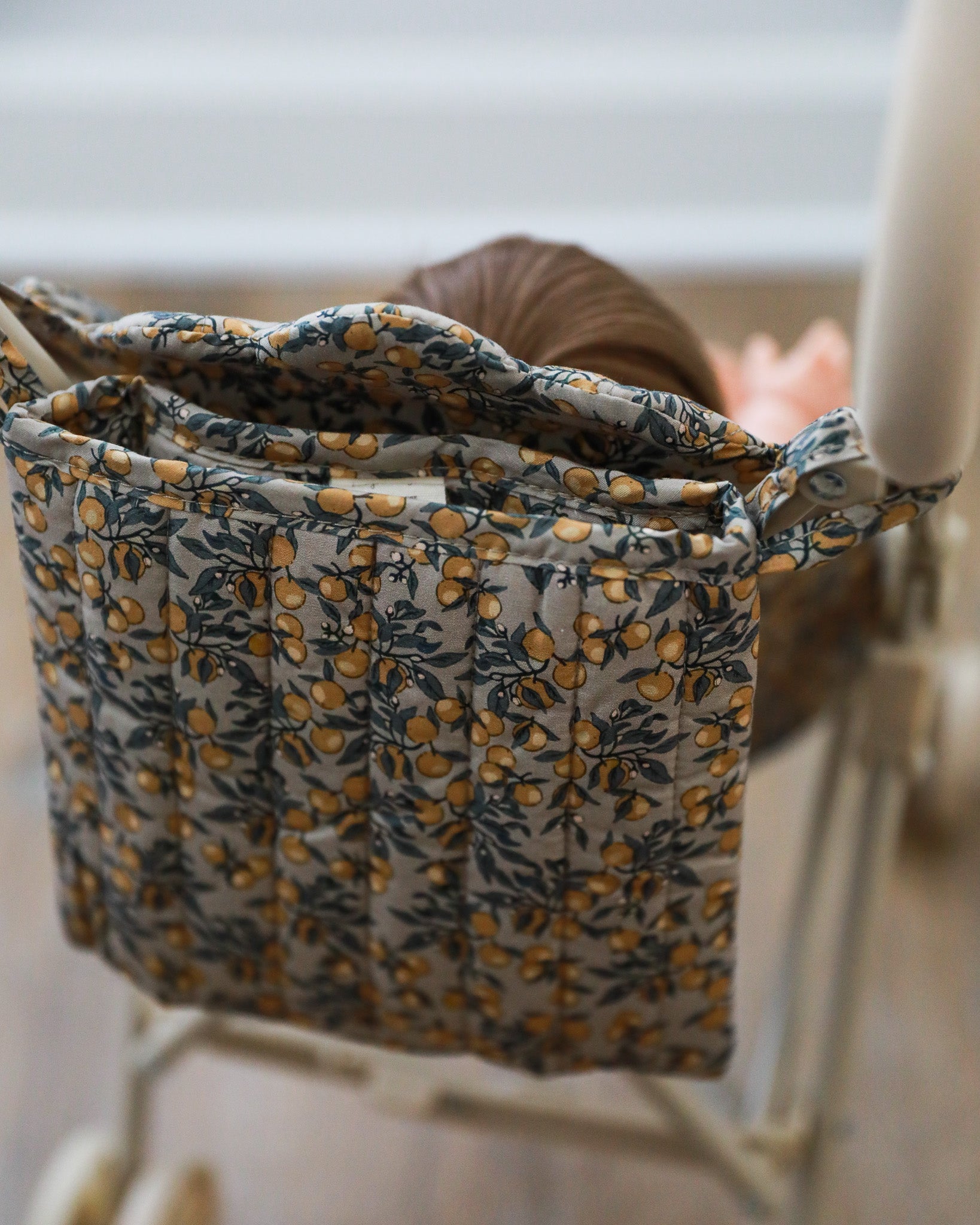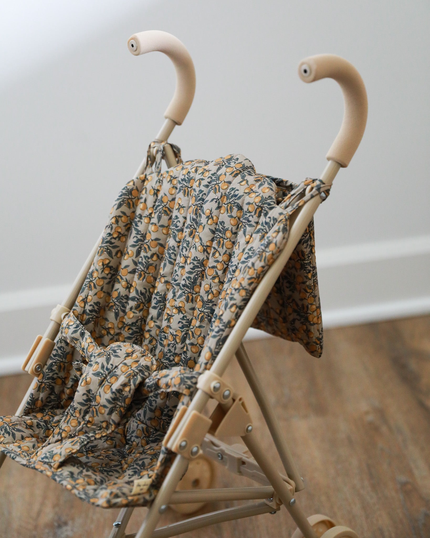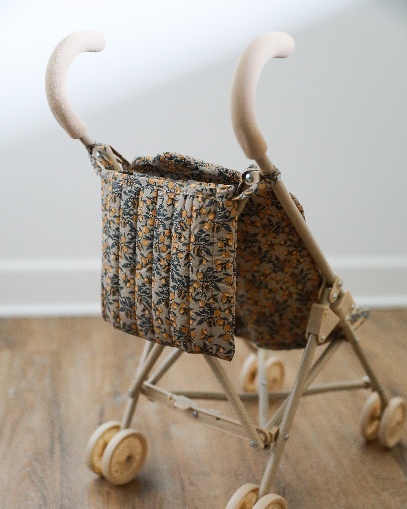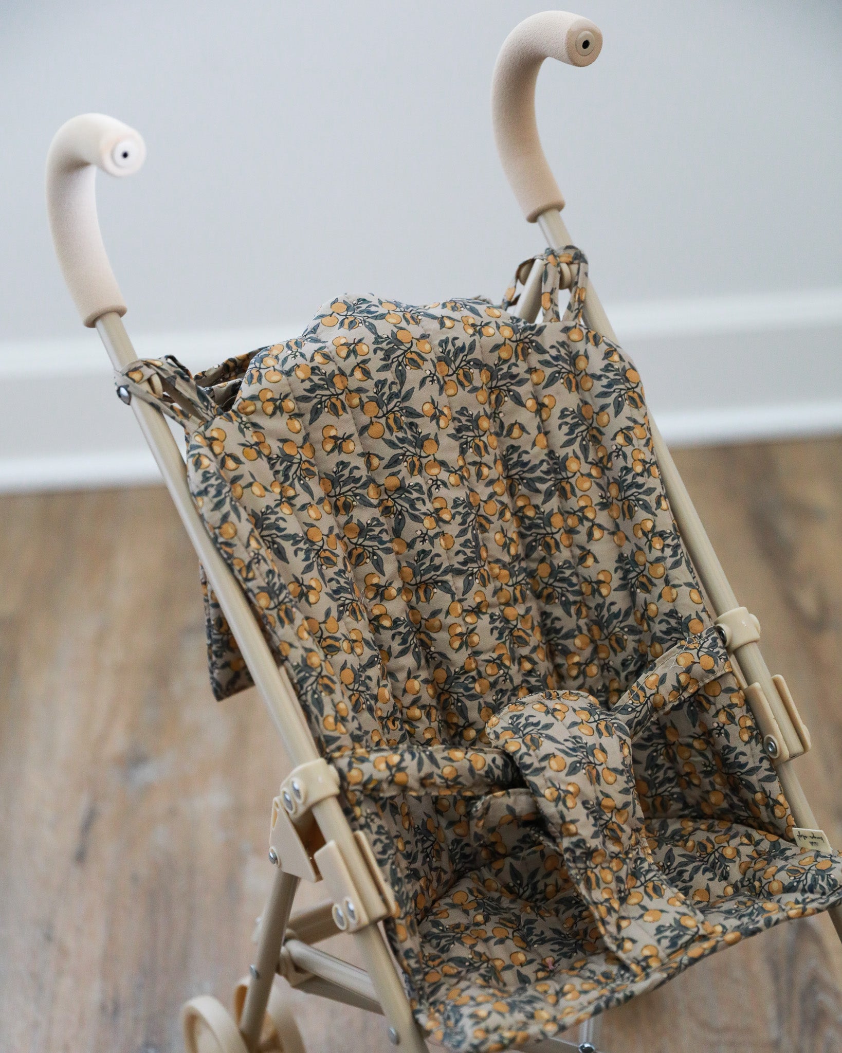 Take your adorable doll everywhere in the cutest baby doll stroller! This amazing doll stroller in a beautiful Orangerie Beige print features removable fabric made of 100% organic cotton. The frame is made of reinforced iron with soft and spongy EVA material at the handles.