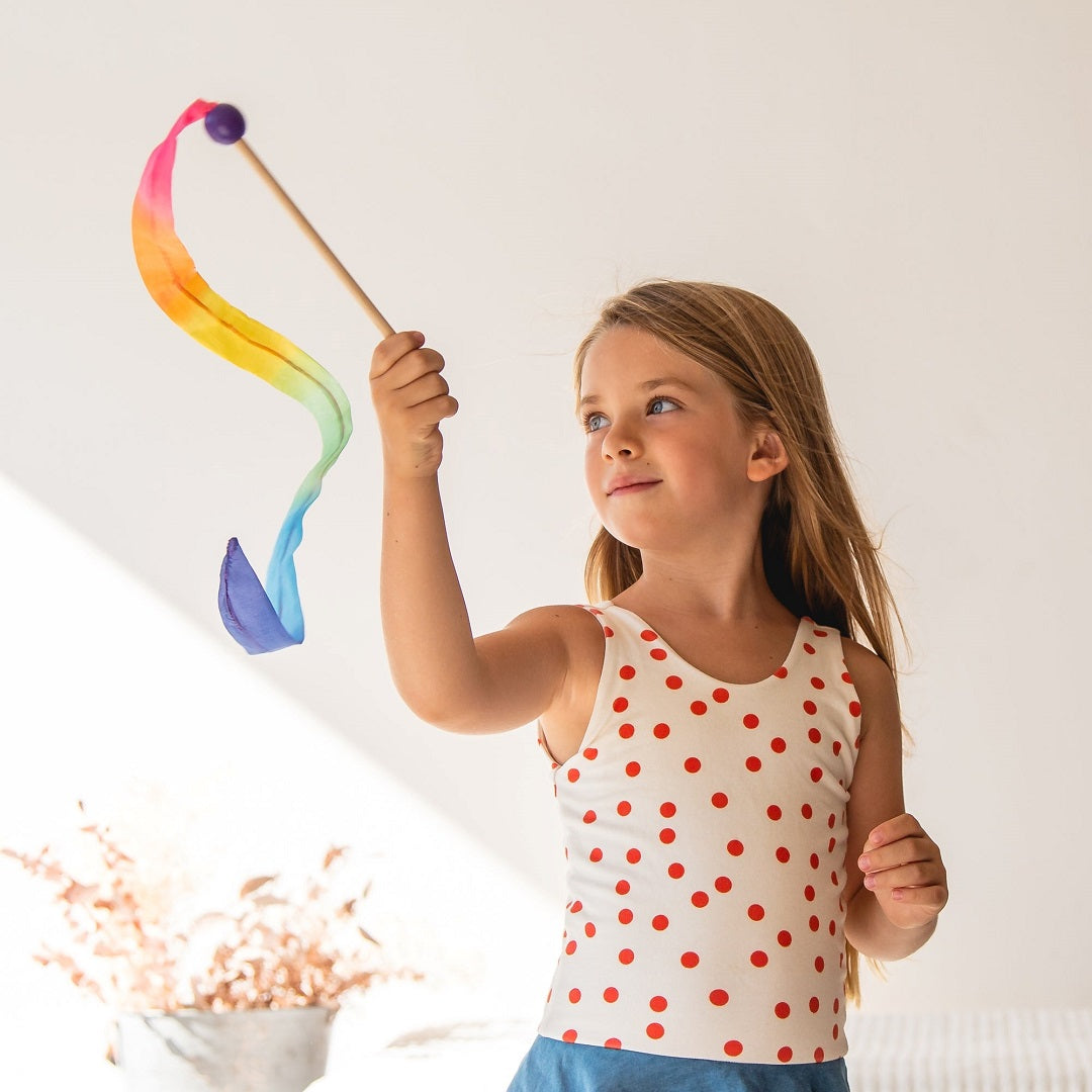 Sarah's Silks Mini Streamers will have your kids staying active and excited! These Mini Streamers are easy to grip for little hands and make play a lot more thrilling and fun to look at. Some exciting play ideas with these mini streamers include waving in the wind, imaginary letter writing, dance, fishing and much more!
