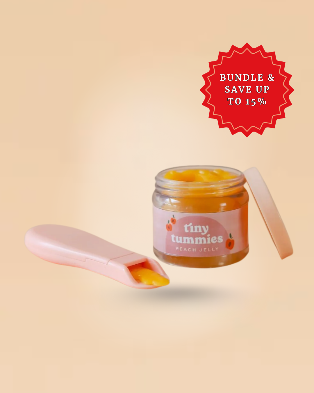 Helpful Tips: Demonstrate how to listen for the distinctive "click" when inserting the spoon completely into the jar. This activates the mechanism that brings the "jelly" onto the spoon. To enhance the gentle peach aroma, softly scratch the scented sticker inside the lid before replacing.